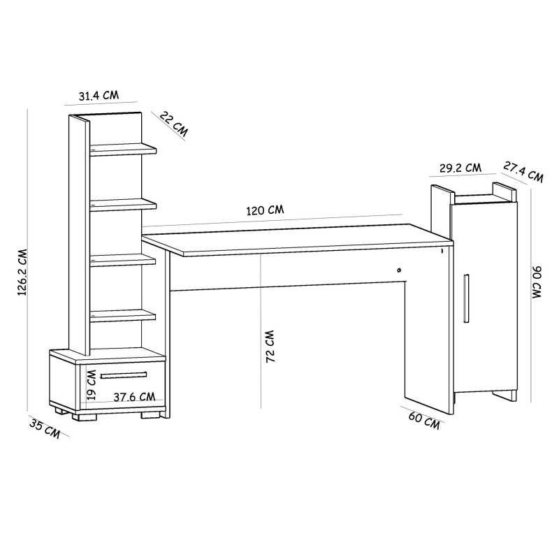Γραφείο: Πλάτος: 120 cm ύψος: 72 cm βάθος: 60 cm