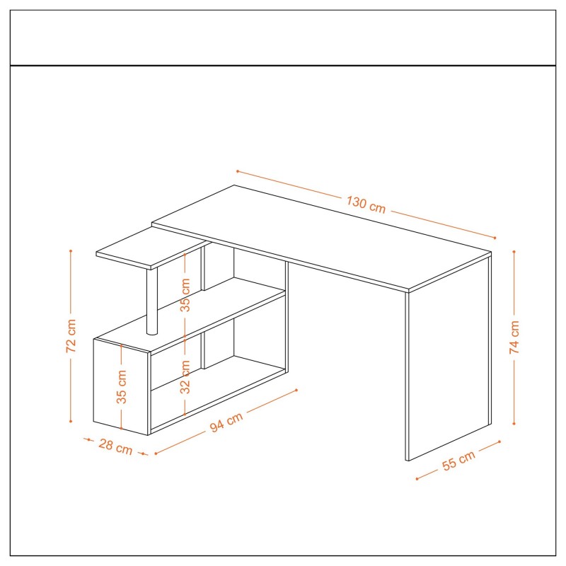 Μέγεθος γραφείου μελέτης: Πλάτος: 130 cm ύψος: 74 cm βάθος: 109 cm