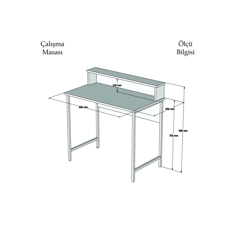 Μέγεθος γραφείου μελέτης: Πλάτος: 90 cm Ύψος: 75 cm Βάθος: 50 cm