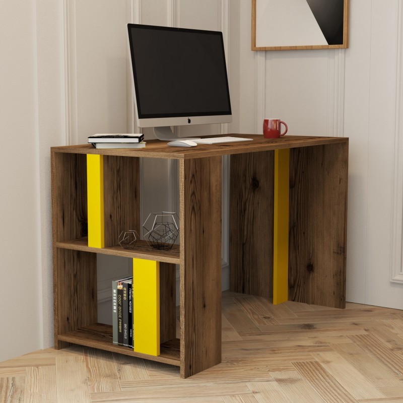 Γραφείο Londra καρυδί κίτρινο χρώμα μελαμίνη 120x60x75 4cm