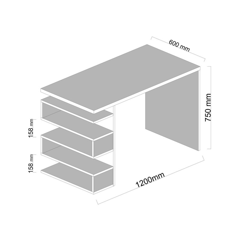 Μέγεθος γραφείου μελέτης: Πλάτος: 120 cm Ύψος: 75 cm Βάθος: 60 cm