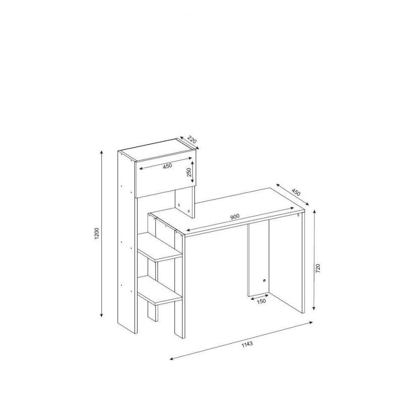 Μέγεθος γραφείου μελέτης: Πλάτος: 90 cm ύψος: 72 cm βάθος: 45 cm