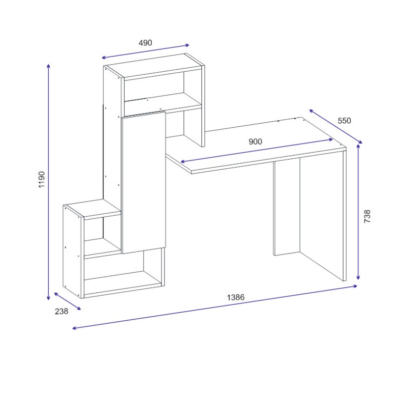 Γραφείο Ridere λευκό χρώμα μελαμίνη 138 6x55x73 8cm