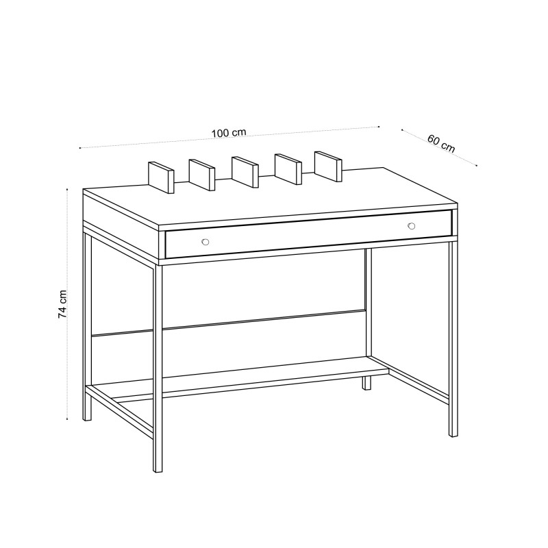 Μέγεθος γραφείου μελέτης: Πλάτος: 100 cm ύψος: 74 cm βάθος: 60 cm