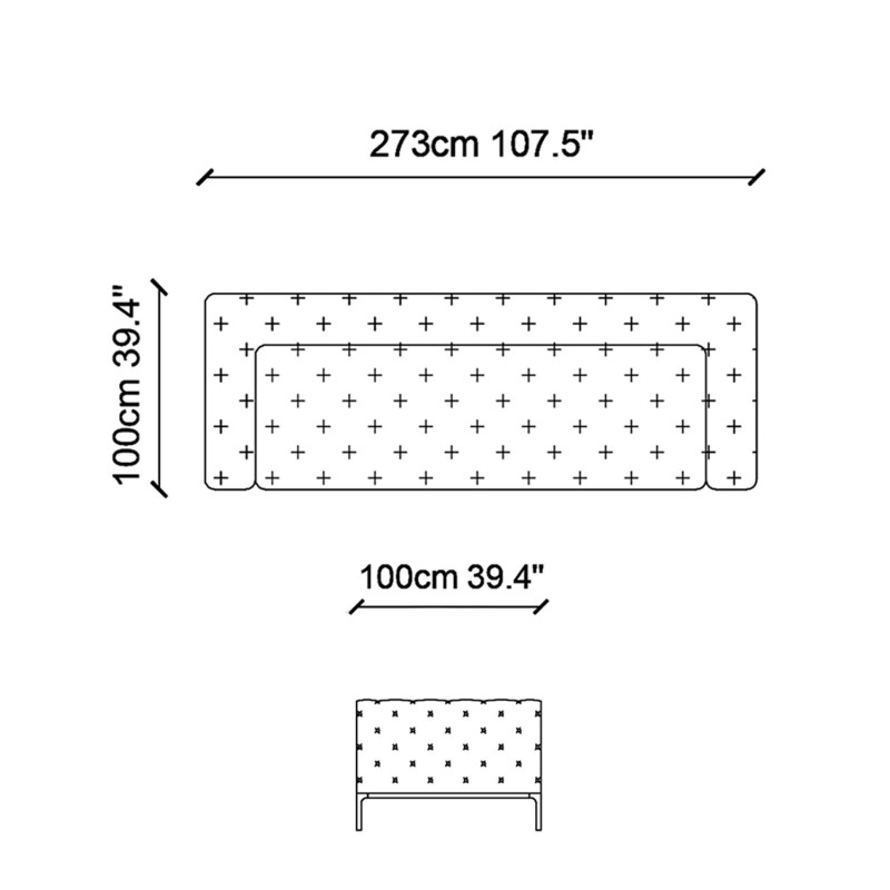 Πλάτος: 273 cm Βάθος: 100 cm Ύψος: 71 cm