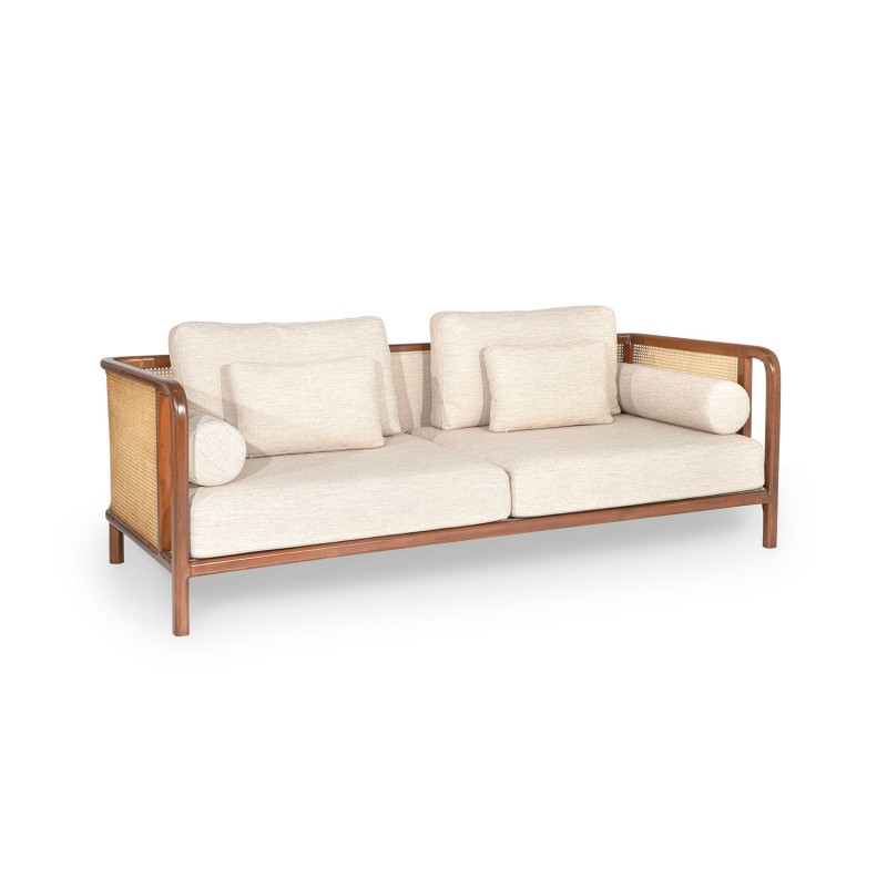 Καναπές τριθέσιος Arat ξύλινος ύφασμα κρεμ 230x70x94cm
