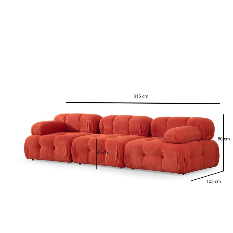 Καναπές τριθέσιος Doblo κόκκινο 315x105x80cm