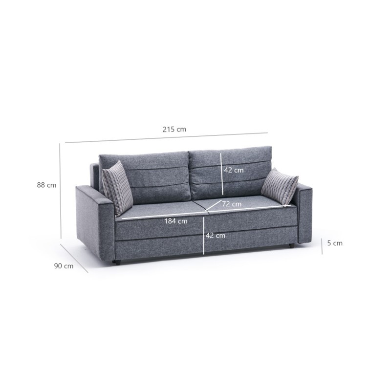 Καναπές τριθέσιος Ece γκρι 215x90x88cm