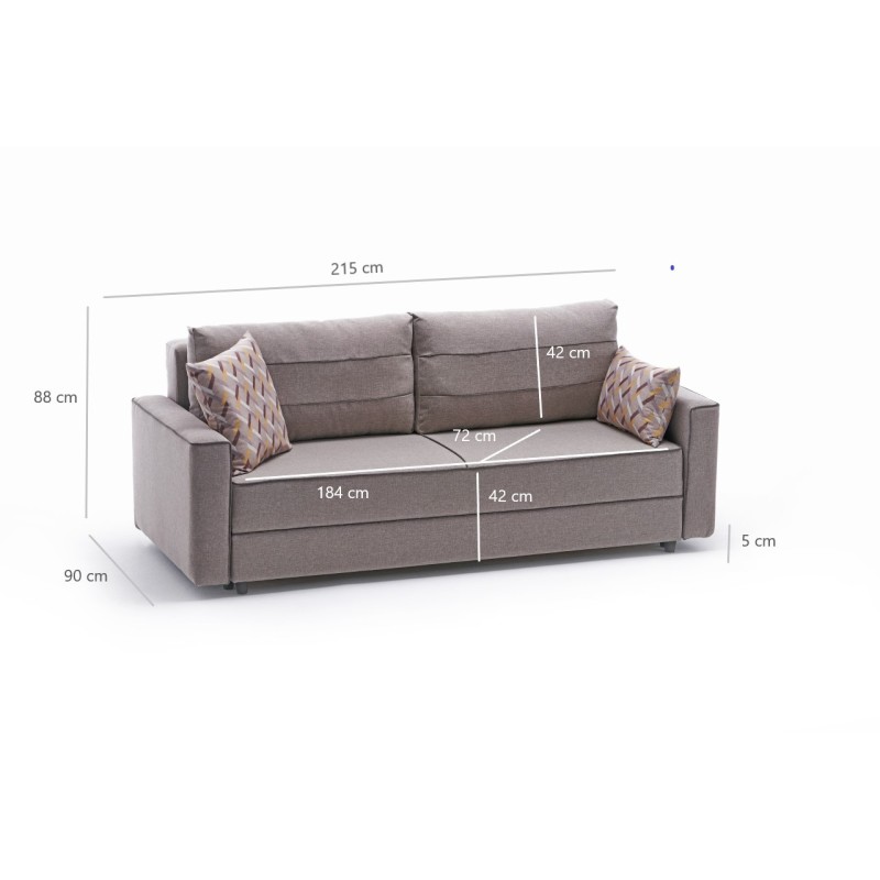 Βάθος θέσης: 72 cm Ύψος θέσης: 42 cm Μήκος θέσης: 184 cm