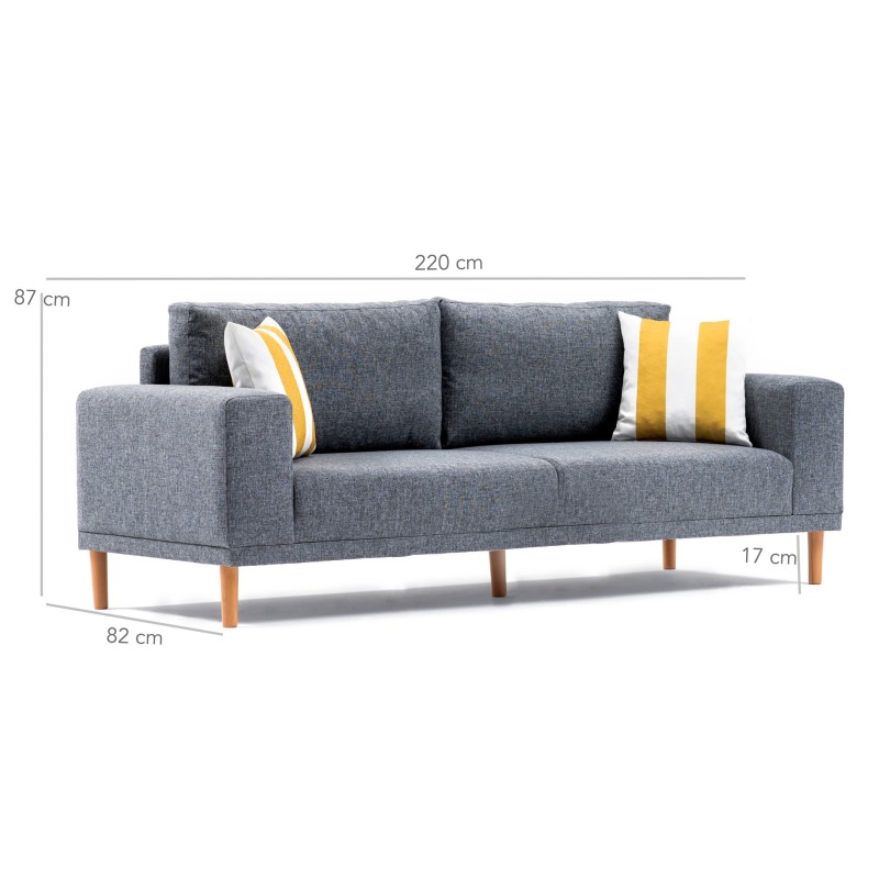 Καναπές τριθέσιος Franz γκρι 220x82x87cm