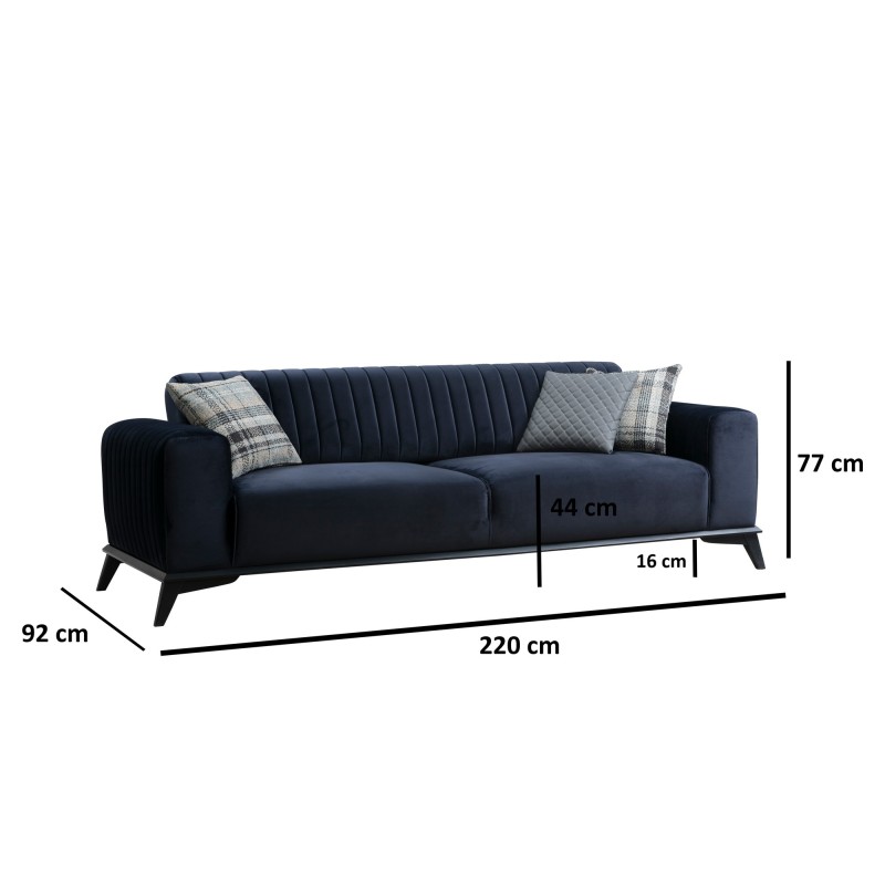 Καναπές τριθέσιος Lisa Navy Blue 220x92x77cm ed608