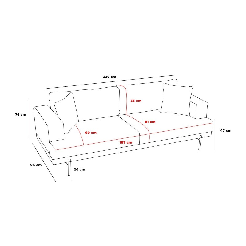 Πλάτος: 227 cm Ύψος: 94 cm βάθος: 76 cm