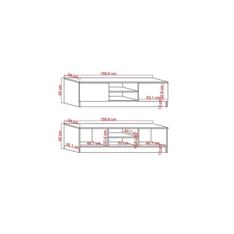 Πλάτος: 159,8 cm Ύψος: 45 cm Βάθος: 34 cm