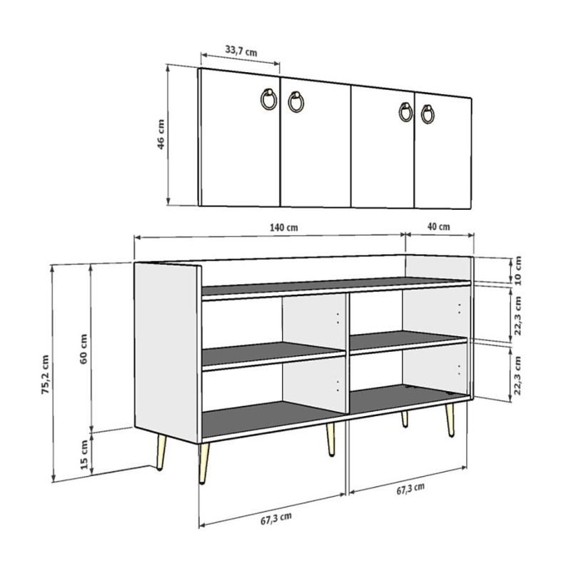 Πλάτος: 140 cm ύψος: 75,2 cm βάθος: 40 cm