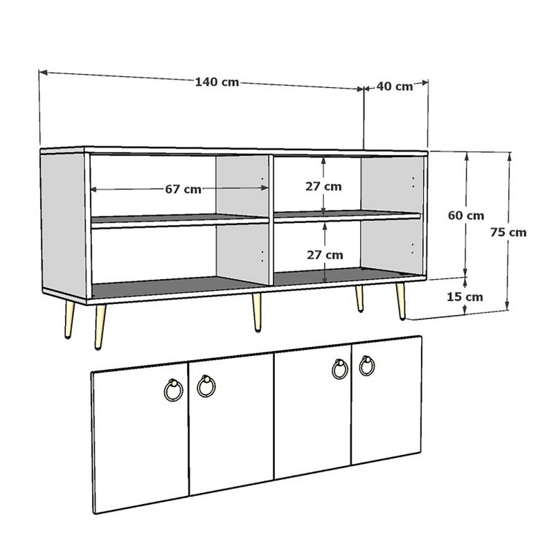 Πλάτος: 140 cm Ύψος: 75 cm Βάθος: 40 cm
