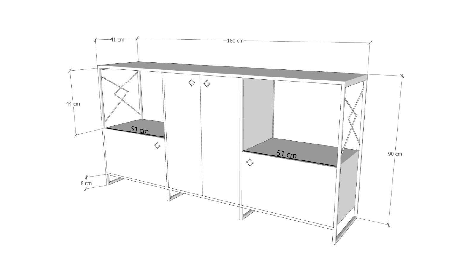 Πλάτος: 180 cm Ύψος: 90 cm Βάθος: 41 cm
