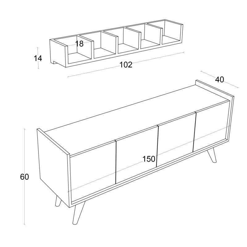 Μέγεθος: Πλάτος: 150 cm ύψος: 40 cm βάθος: 76 cm