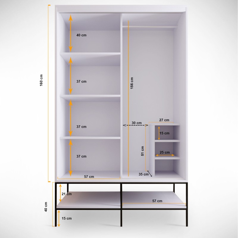 Πλάτος: 120 cm Ύψος: 200 cm βάθος : 57 cm
