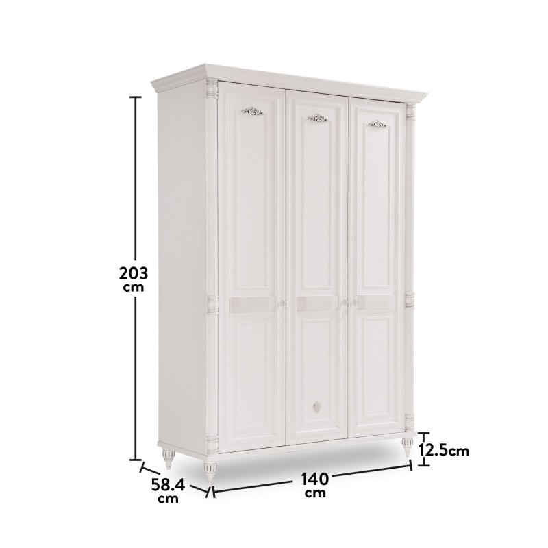 Ντουλάπα Romantica τρίφυλλη 140x58x203cm μελαμίνη