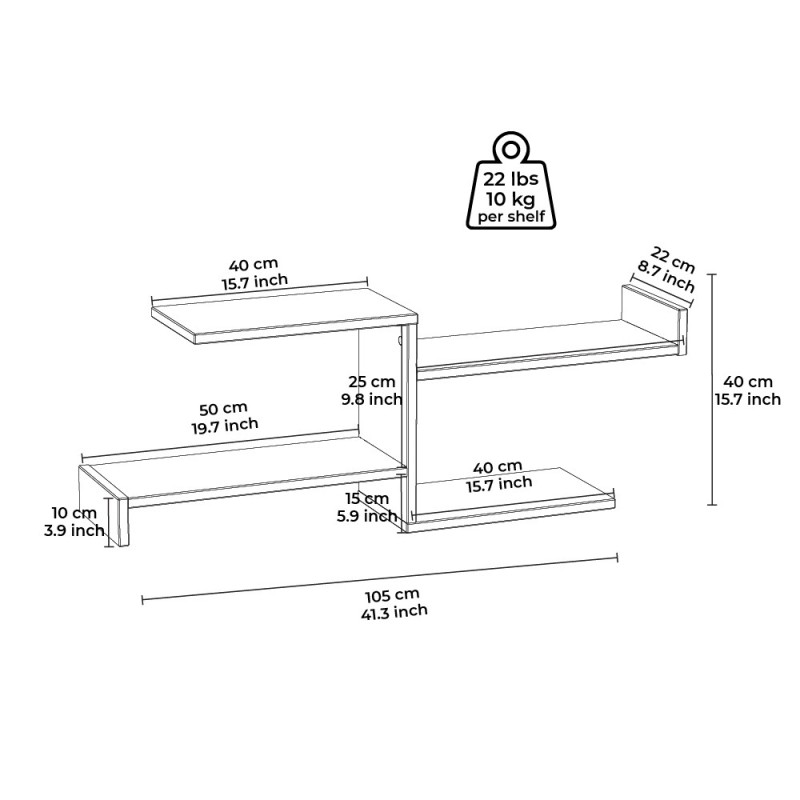 Ράφι τοίχου Derosso καρυδί μελαμίνη 105x22x40cm ed10264