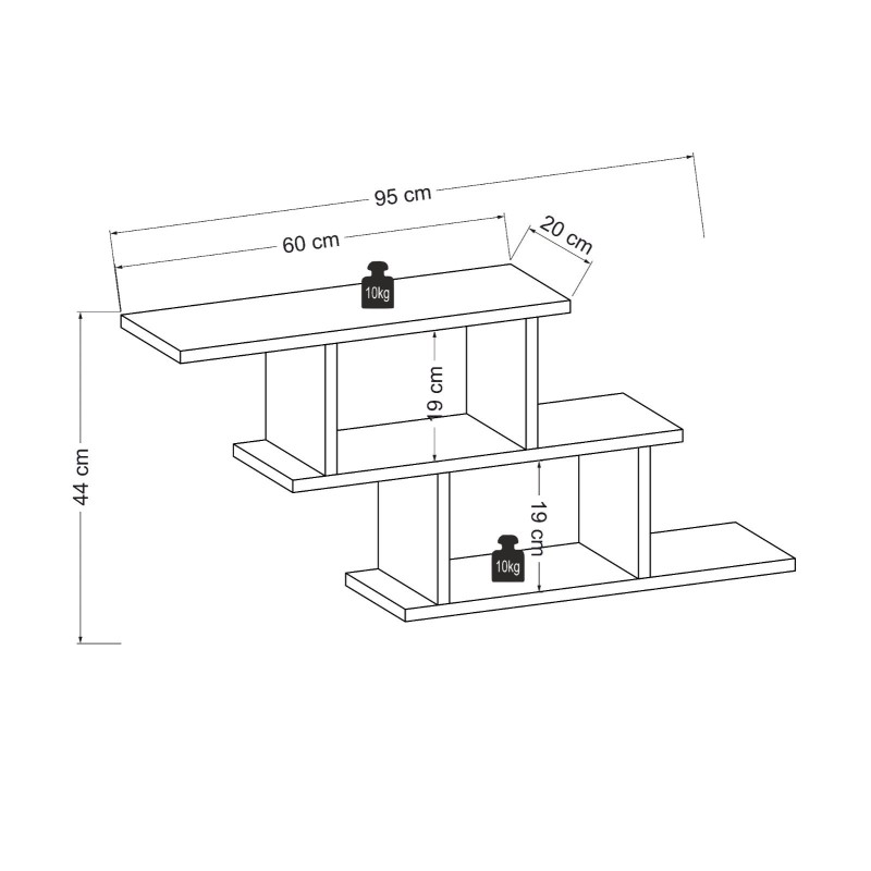 Πλάτος: 95 cm Ύψος: 44 cm βάθος: 20 cm