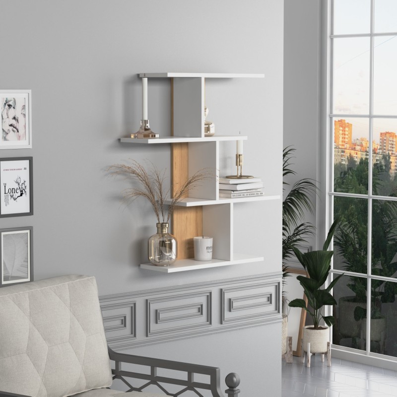 Ράφι τοίχου Karbon άσπρη oak μελαμίνη 88x20x89cm