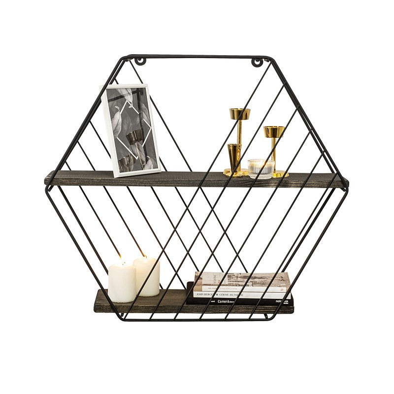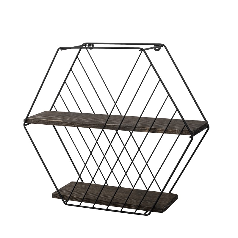Ραφιέρα Anemone σκούρο καρυδί μαύρο ξύλο μεταλλικό πλαίσιο 60x15x52εκ ed7673