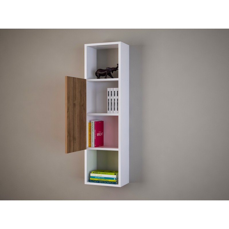 Ραφιέρα Novella, χρωματισμός άσπρο καρυδί, μοριοσανίδα με επικάλυψη μελαμίνης