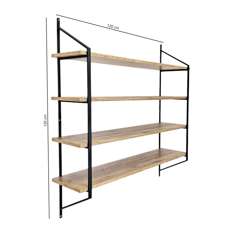 Ραφιέρα Raffy μαύρο atlantic pine μελαμίνη μεταλλικός σκελετός 120x28x120εκ ed16609
