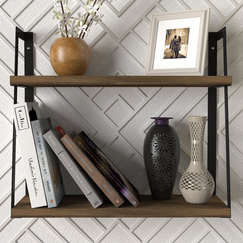 Ραφιέρα Stella καρυδί μαύρο μελαμίνη μεταλλικός σκελετός 45 4×14 5×40 2εκ ed1678