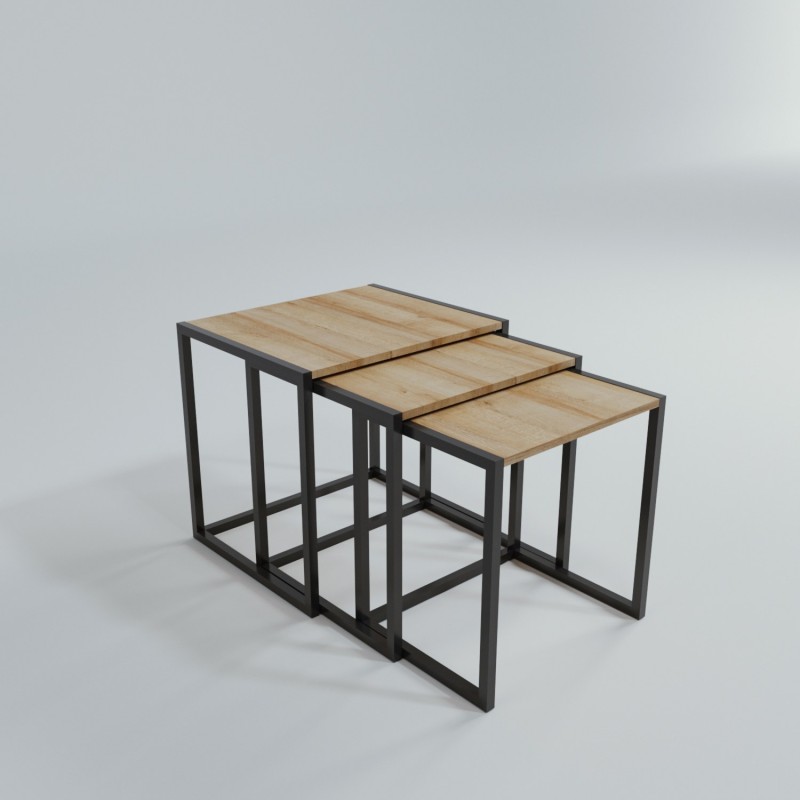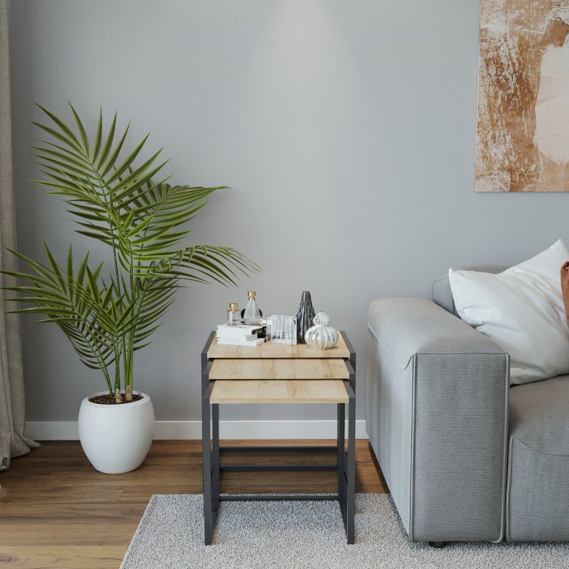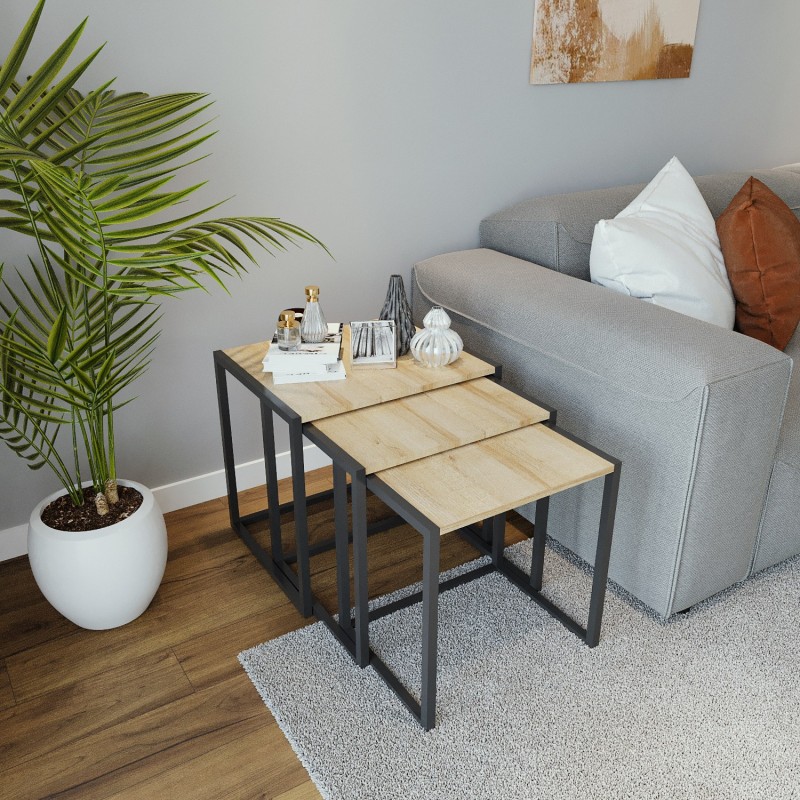 Σετ 3τεμ τραπέζια σαλονιού Wismar μελαμίνη μέταλλο 35x50x60cm