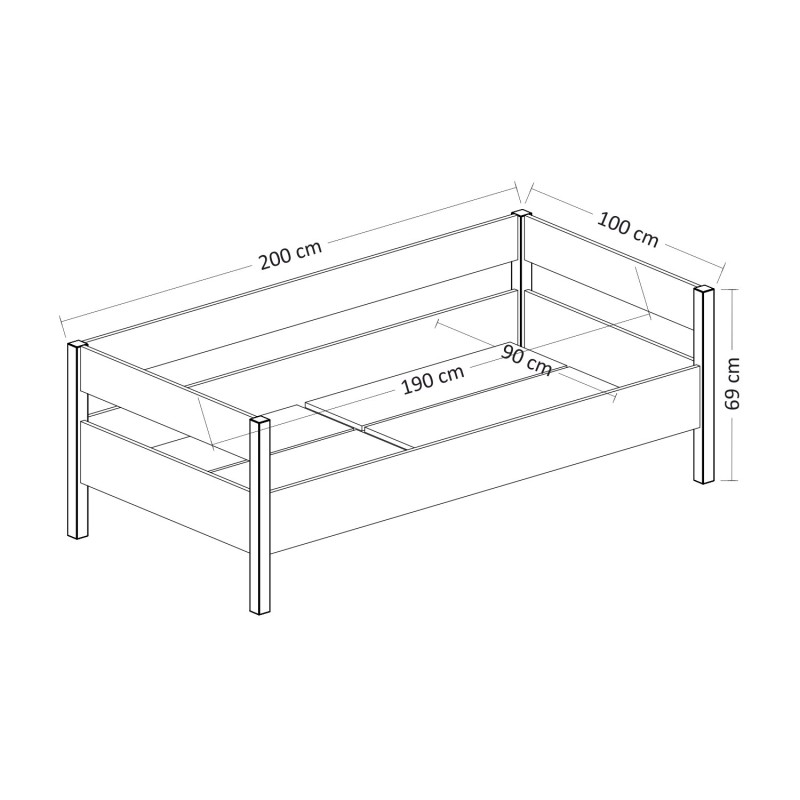Μονό κρεβάτι: Πλάτος: 100 cm Ύψος: 200 cm Βάθος: 69 cm