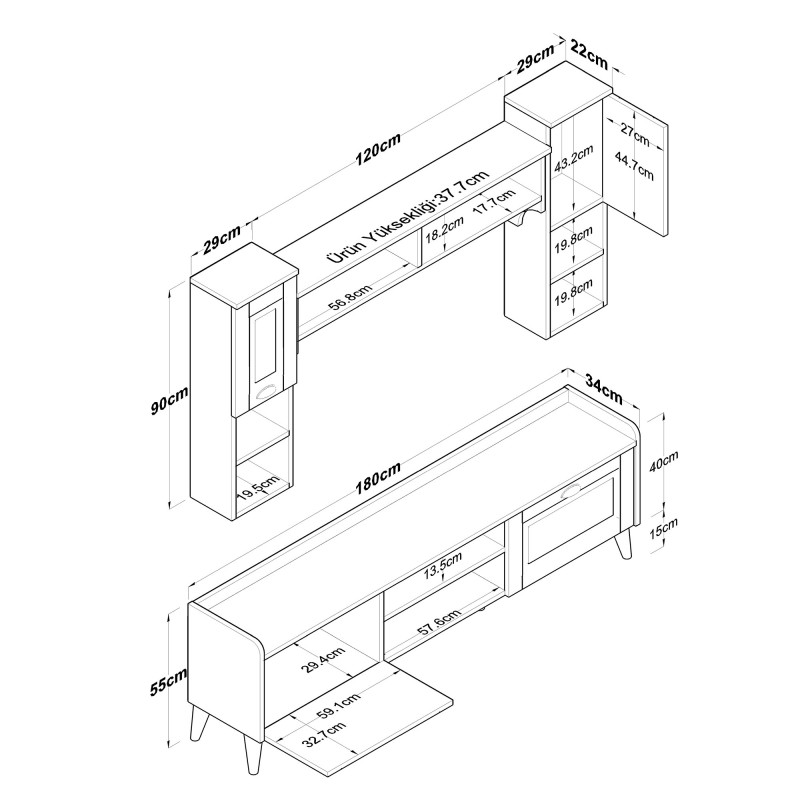 Μέγεθος tv stand: Πλάτος: 180 cm Ύψος: 55 cm βάθος: 35 cm