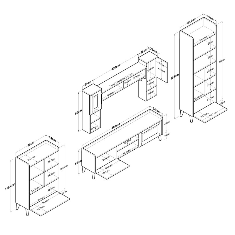 Μέγεθος tv stand: Πλάτος: 180 cm Ύψος: 55 cm βάθος: 35 cm