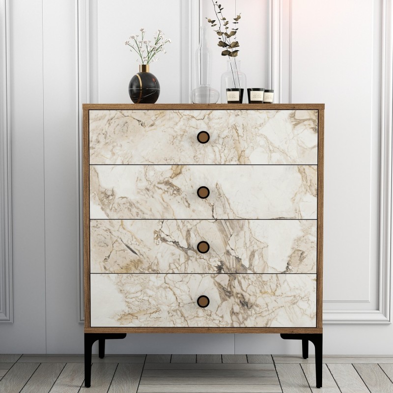 Συρταριέρα Lisbona καρυδί λευκό 76x40x90 7cm ed3530