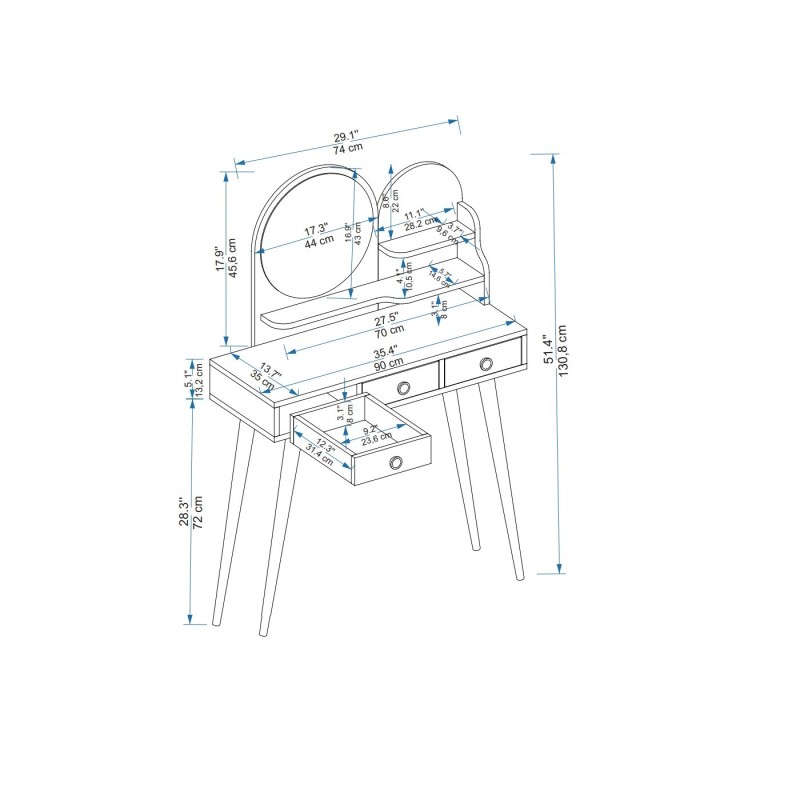 Τουαλέτα κρεβατοκάμαρας Ruges άσπρη μελαμίνη 130 8x35x74cm