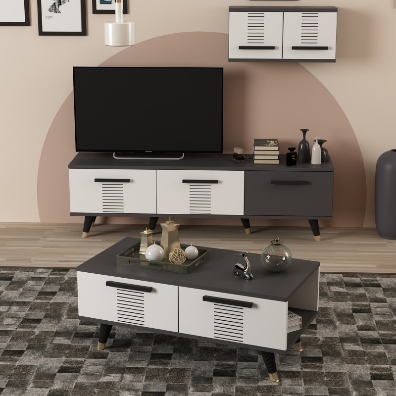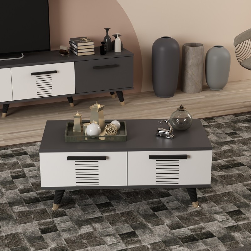 Τραπεζάκι σαλονιού Asimo ανθρακί λευκό 90x45x38cm
