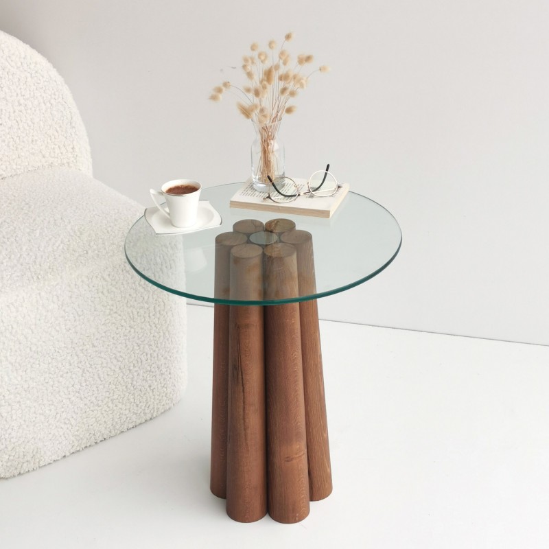 Τραπεζάκι σαλονιού Pianeta ξύλο γυαλί 45x50cm