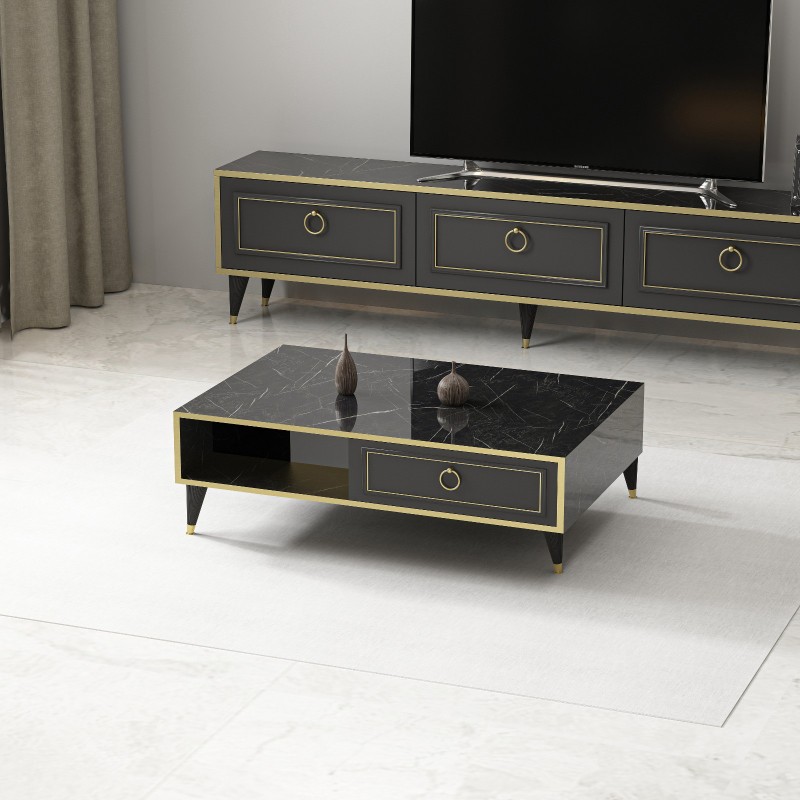 Τραπεζάκι σαλονιού Vale μαύρο χρυσό χρώμα μελαμίνη 90x60x40cm ed4152
