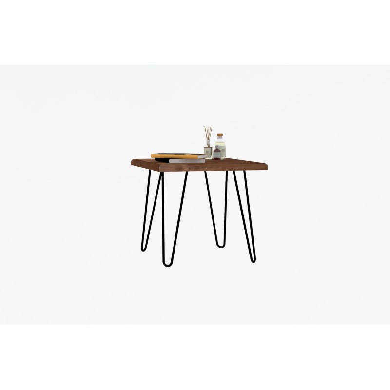 Τραπεζάκι βοηθητικό σαλονιού Mahic καρυδί ξύλο μεταλλικά πόδια 43x50cm