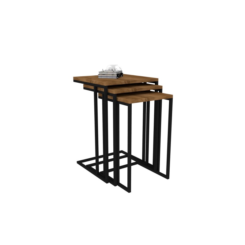 Τραπεζάκια σαλονιού set Roma χρώμα καρυδί μαύρο μελαμίνη μέταλλο 40x60cm