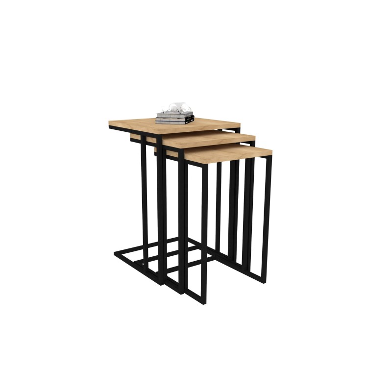 Τραπεζάκια σαλονιού set Roma χρώμα sapphire μαύρο μελαμίνη μέταλλο 40x60cm ed8143