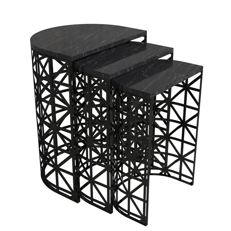 Τραπεζάκια σαλονιού set Stil μέταλλο μελαμίνη μαύρη Marble 46x33x62cm