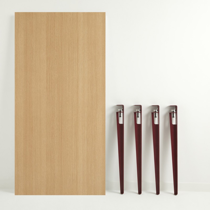 Τραπέζι Pinios Wooden μελαμίνη κόκκινα μεταλλικά πόδια 150x75cm ed16046