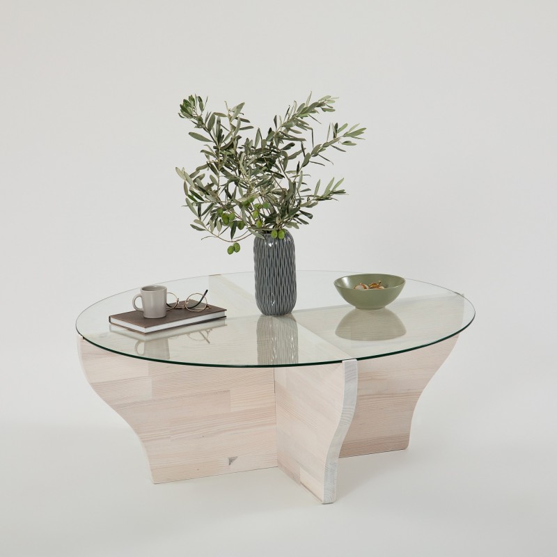 Τραπέζι σαλονιού Amphora άσπρο μασιφ ξύλο επιφάνεια γυαλί 92x92x36εκ ed16099