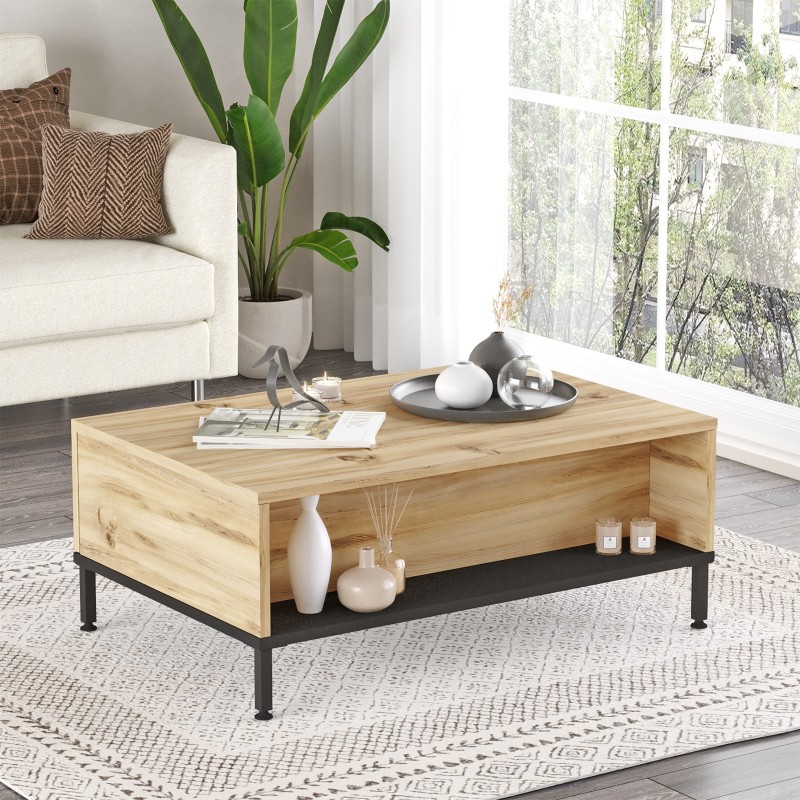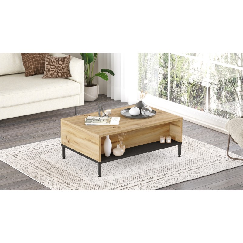 Τραπέζι σαλονιού Brio δρυς μελαμίνη μεταλλικά πόδια 90x60x35εκ ed10118