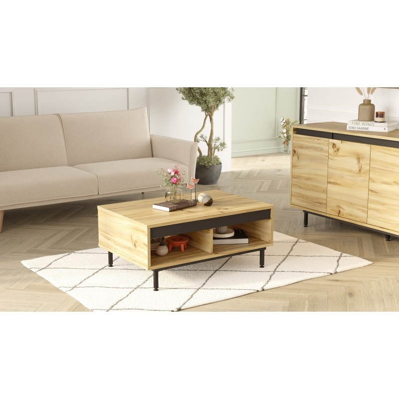 Τραπέζι σαλονιού Brio δρυς μελαμίνη μεταλλικά πόδια 90x60x37 6εκ ed10119