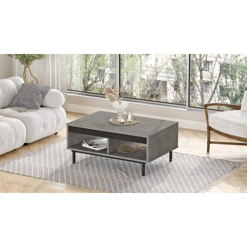 Τραπέζι σαλονιού Brio γκρι μελαμίνη μεταλλικά πόδια 90x60x37 6εκ ed10120