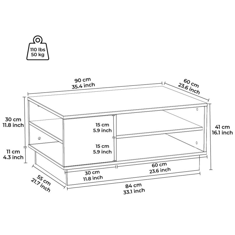 Τραπέζι σαλονιου Camillo δρυς μελαμίνη 90x60x41εκ ed7869