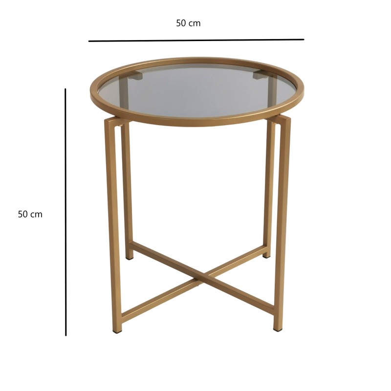 Τραπέζι σαλονιού Cento 50x50cm μέταλλο χρυσό γυαλί